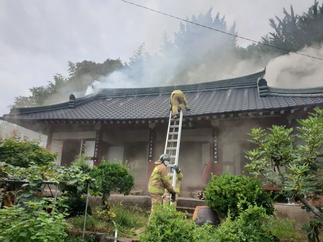 기와지붕의 경우 급경사로 현장 접근이 곤란하고 화재가 지붕 깊은 곳에서 연소하는 심부화재일 경우가 많아서 열화상카메라 기능이 있는 소방드론을 활용해 잔존화염을 확인하고 화재를 진압할 수 있었다.