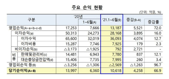 지속적인 외형 확대를 통해 이자수익이 증가하는 등 양호한 영업실적을 낸 덕분이다. 대출 증가에 따른 이자이익이 3895억원 확대되고, 유가증권 관련 이익 등 비이자이익도 2721억원 늘었다.