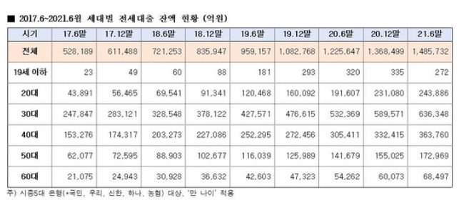 [시사뉴스 한지혜 기자] 문재인 정부 5년간 청년층이 받은 전세대출 규모가 58조원 이상 증가한 것으로 나타났다.