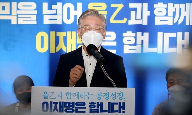 이 지사는 이날 '을 권리보장' 공약을 발표하는 기자간담회가 끝난 뒤 취재진과의 질의응답에서 "이유는 '코로나 대응용인데 내년엔 필요 없다, 끝났다'는 것인데 내년에 팬데믹이 끝난다고 누가 그러냐"며 이같이 말했다.