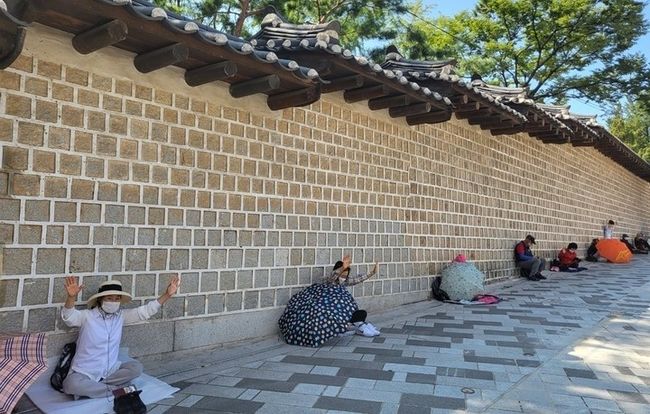 이날 예배가 시작되기 전 사랑제일교회 교인 수백명은 서울 종로구 동화면세점 앞과 서울시의회를 거쳐 시청역으로 향하는 길목에 약 1~2m 간격을 두고 자리를 잡았다. 이후 예배가 시작되자 각자 유튜브를 시청하거나 찬송가를 불렀다.