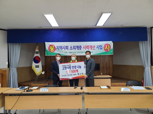 낙서면은 고령층이 많은 지역적 특성을 고려하여 일상생활에 필요한 돋보기안경을 전 가구에 전달하고, 추가로 청・장년층 가구에는 여름철 따가운 햇빛을 차단할 수 있는 선글라스 200점을 전달할 계획이다.