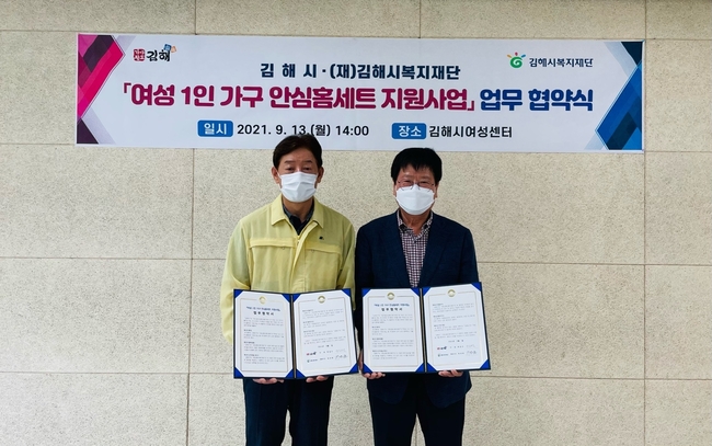 [시사뉴스 정윤철 기자] 김해시(시장 허성곤)는 지난 13일 김해시복지재단(대표이사 허만원)과 '여성 1인 가구 안심홈세트 지원사업' 추진을 위한 업무협약을 체결했다.