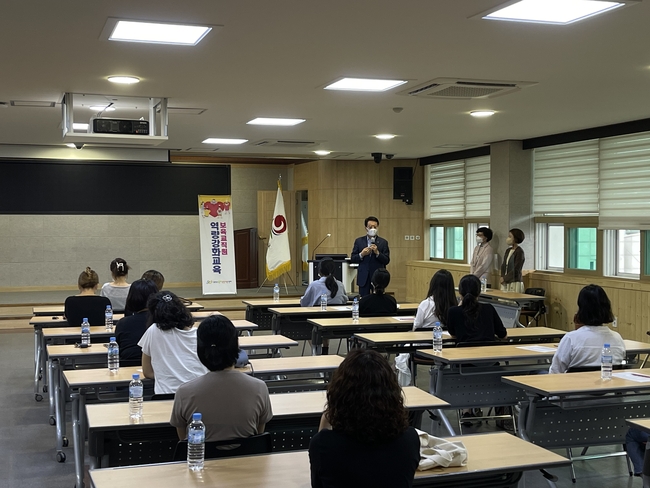 보육교직원 역량강화 워크숍은 보육교사들의 전문성 강화, 보육업무 수행에 도움이 되는 과정으로 편성했으며, 교육내용으로는 우리아이 마음을 달래주는 감정코치, 영유아 부적응 행동이해 및 지도법으로 꾸며졌고 끝으로 보육교직원들의 잠재된 스트레스 해소 및 힐링할 수 있는 플라워 테라피가 진행됐으며 교육에 참석한 보육교직원들이 실제 보육현장에 도움되는 교육을 받아서 뜻깊은 교육이었다고 전했다.