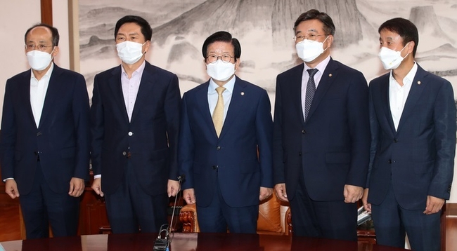 윤호중 민주당 원내대표와 김기현 국민의힘 원내대표는 이날 낮 12시 국회에서 박병석 국회의장 주재로 1시간30분 가량 언론중재법 개정안 협의에 나섰지만 합의를 도출하지 못했다.