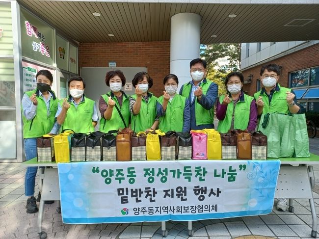 '정성가득찬 나눔사업'은 2021년 양주동 협의체 대표사업으로서, 협의체 위원들이 홀몸 어르신 등 취약계층 20가구를 직접 방문하여 따뜻한 국과 밑반찬을 전달하면서 안부를 확인하는 등 정서적 지원도 함께하고 있다.
