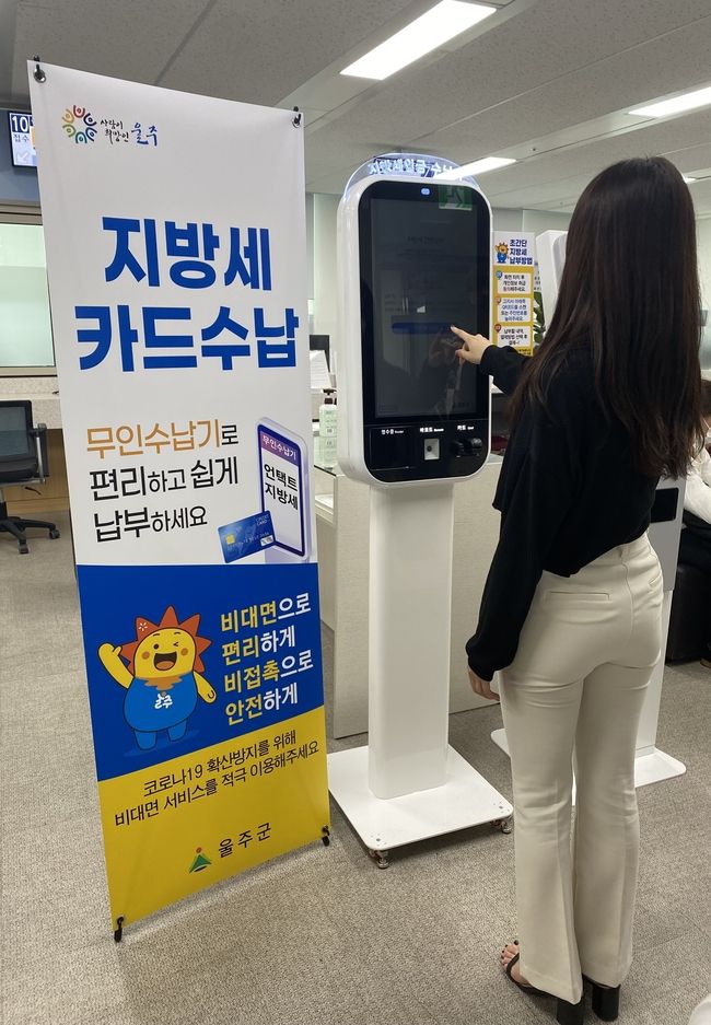 울주군은 본청(3층 세무민원실) 및 읍 행정복지센터 등 4곳에 무인수납기를 설치하고 방문민원의 경우 편리하게 납부할 수 있도록 했다. 본청 방문 민원의 경우 한 곳에서 취득세 등 신고 및 비대면 납부 가능으로 민원 대기시간을 단축했다.
