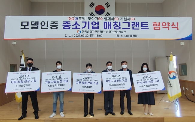 [시사뉴스 정윤철 기자] 한국승강기안전공단(이하 공단)이 ‘모델인증 중소기업 매칭그랜트’대상 기업 5곳을 선정해 승강기안전기술원에서 30일 업무협약을 체결했다.