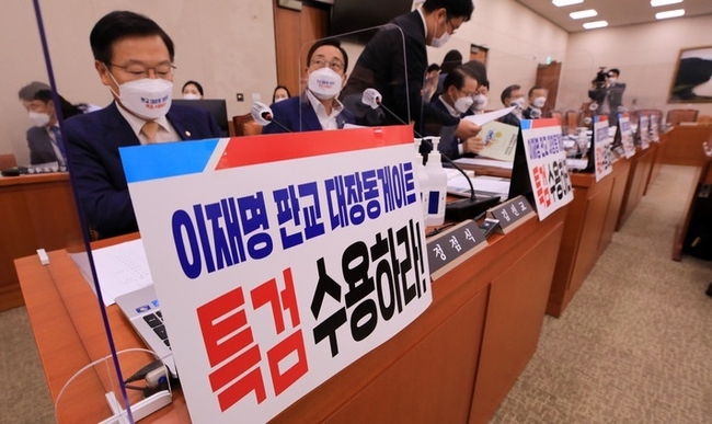 [시사뉴스 홍경의 기자] 국회 국방위원회 국정감사가 국민의힘의 대장동 개발 특혜의혹 특검 요구로 인해 시작부터 파행됐다. 국방위는 5일 국방부 청사에서 전체회의를 열 예정이었으나 국민의힘 소속 위원들이 자리에 설치한 '이재명 판교 대장동 게이트 특검 수용하라' 피켓을 두고 민주당 위원들이 항의하면서 잠정 연기됐다.