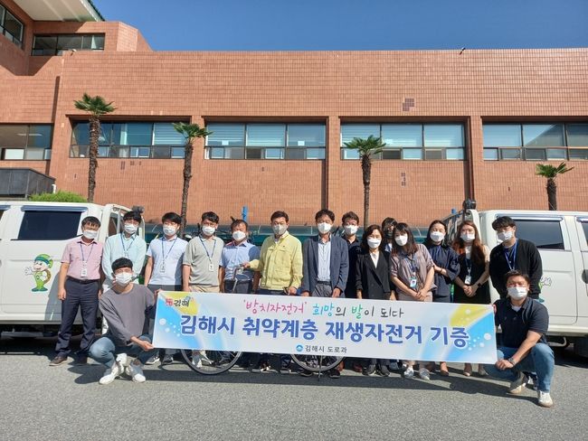 이날 전달된 자전거는 올해 초부터 관내 경전철 역사 자전거보관대 및 도로변 일대에 방치된 자전거에 대한 일제 점검 시 수거된 무단방치 자전거로, 김해시가 직접 수리해 재탄생시킨 재생자전거다.