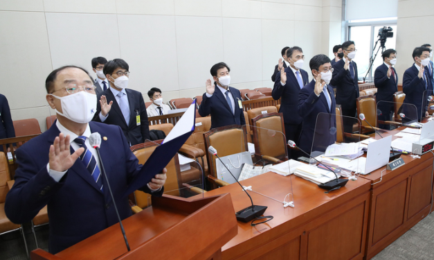 홍남기 부총리는 이날 국회에서 열린 기획재정위원회의 기획재정부 조세 정책 분야 국정 감사에서 각 의원 질의에 답하는 과정에서 이렇게 밝혔다. 그는 "잘못된 세수 추계는 예산을 적소에 투입하지 못하게 하고 재정 운영의 경직성을 초래한다"는 류성걸 국민의힘 의원에게 "세수 추계 오차가 큰 것에 대해서는 송구하다"고 답했다.