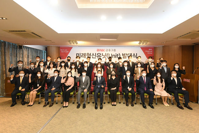 그룹 전체 계열사를 대상으로 공모 과정을 거쳐 선발된 미래혁신유닛(Unit)은 앞으로 2년간 기존과 차별화 된 젊고 역동적인 아이디어를 제시하는 씽크탱크 역할 뿐만 아니라 미래 핵심고객의 성향과 트렌드 분석을 통한 맞춤 마케팅 전략 수립 및 막힘없는 소통을 통해 BNK만의 새로운 혁신 문화를 창출해 가는 역할을 수행하게 된다.