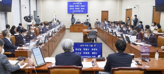 이에 야당 간사인 김희곤 의원은 "애초 증인관련 문제가 된건 대장동 게이트 관련 증인 40명을 신청했는데 한명도 못받겠다고 해 이렇게 됐다"라고 반박했다.