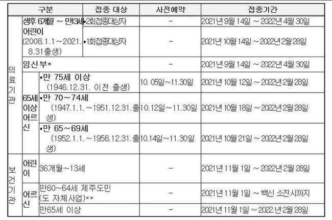 도는 5일부터 75세 이상 어르신 대상 인플루엔자 예방접종 사전예약이 진행됨에 따라 접종 초기 접종대상자 분산을 위해 사전예약 후 의료기관을 방문해줄 것을 당부했다.