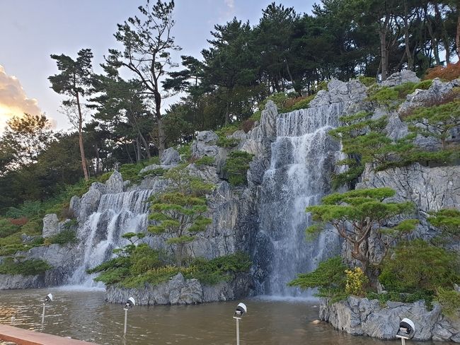 3갈래의 폭포 물줄기가 떨어져 투명하고 넓은 연못을 채우고, 연못에 있는 분수가 물줄기를 쏘아 올리며, 그 사이를 연못 관찰데크를 걸으며 산책하는 다채로운 감상 포인트들로 채워졌다. 또 석가산 내부에 조성된 동굴 안에서도 폭포의 멋진 전경을 바라보며 시원함을 느낄 수 있다.