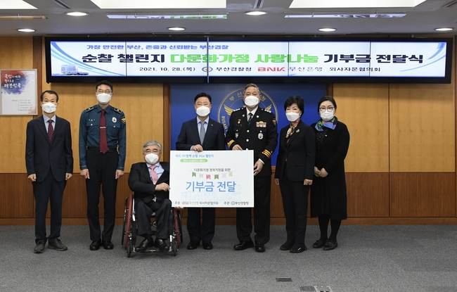 [시사뉴스 정윤철 기자] BNK부산은행은 28일 오전, 부산경찰청에서 다문화가정 치안을 위해 ‘위드 다!함께 순찰 3Go 챌린지’ 기금 전달식을 가졌다.