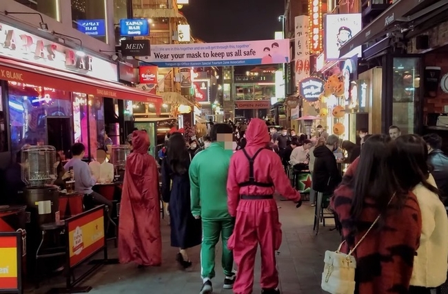 지난 29일 '불금'에 이어 30일 토요일에도 이태원 거리에는 마스크를 쓴 젊은이들이 넷플릭스 드라마 '오징어 게임'의 분장을 하고 돌아다니는 등 벌써부터 핼러윈 분위기를 내고 있다. 이들 대부분 마스크를 올바르게 착용하고 있지만 일부는 아예 착용하지 않거나 턱 밑에 걸쳐 착용하는, 이른바 '턱스크'를 한 모습도 보인다.