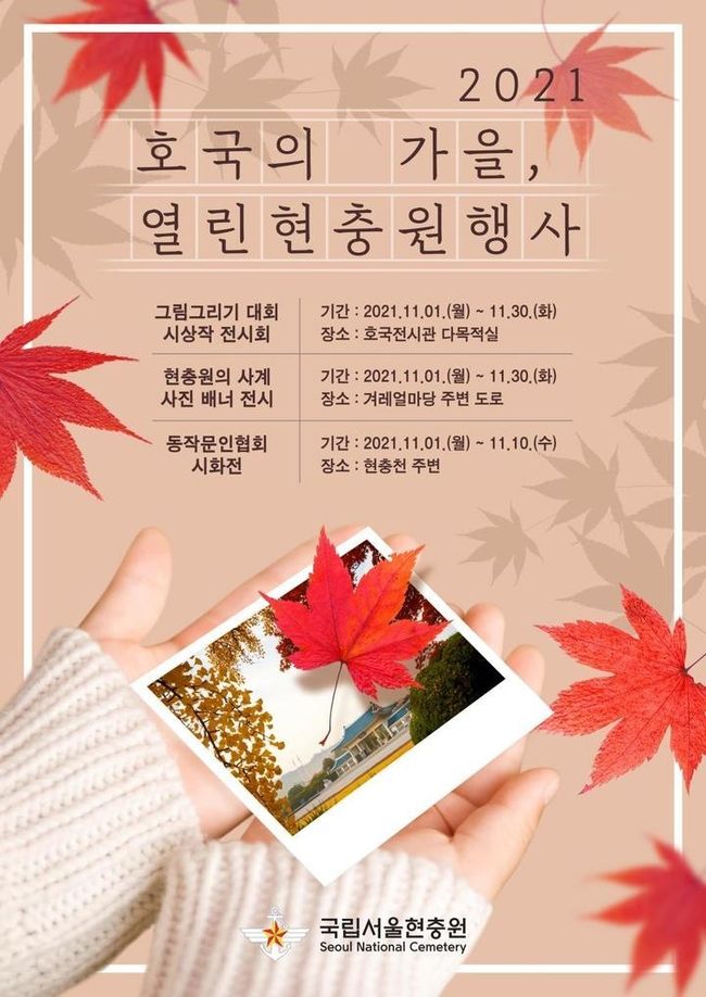 [시사뉴스 홍경의 기자] 국립서울현충원은 올해 호국의 가을, 열린 현충원 행사를 개최한다고 1일 밝혔다.
