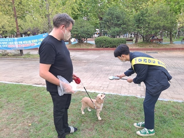 시는 반려견주와 함께 외출한 반려견을 대상으로 등록정보(RFID) 리더기를 활용해 동물등록 여부와 인식표 부착여부 등을 집중 점검했다.
