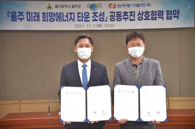 협약에 따라 울주군은 사업추진에 필요한 유휴부지 정보 제공 등 행정적 지원을, 동서발전은 태양광․풍력․수소융복합․미래 등 테마별 신재생에너지 사업추진을 담당한다.