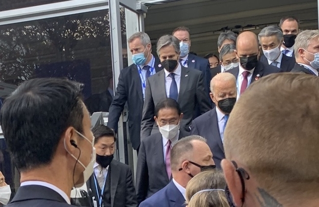 기시다 총리는 이 회의에 바이든 대통령과 함께 입장했다. 두 정상은 회의장으로 걸어들어가면서 대화를 나눴고 옆에는 토니 블링컨 미국 국무장관도 동행했다.