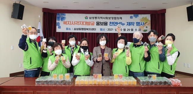 이번 행사는 일부 위원의 재능기부를 시작으로, 위원 전체가 비누만들기 작업에 동참하여 진피비누와 쑥비누 330여장을 제작하게 됐다. 제작된 천연비누는 겨울철 복지사각지대 발굴 홍보에 사용될 예정이며, 독거노인 등 돌봄이웃에게도 일부 전달될 계획으로, 지역사회보장협의체 위원들이 준비부터 제작까지 직접 해낸 성과물이라는 점에서 큰 의미가 있다.
