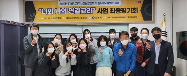 지난 달 26일 노인통합돌봄분과에서는 사회적 관계망 형성을 통한 소외계층 어르신의 삶의 만족도 향상 프로그램 ‘너와 나의 연결고리’ 최종평가회를 김해시자원봉사센터에서 개최했다. ‘너와 나의 연결고리’ 는 코로나19 확산으로 야외활동이 제한되어 정서적 고립감을 겪고 있는 지역 내 소외계층 어르신, 김해중앙여자고등학교 학생 각각 49명이 편지를 주고받으며 정서적 교류를 통해 사회적 관계망 형성하는 것을 지원했다.