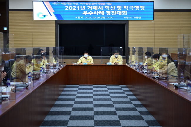 [시사뉴스 정윤철 기자] 거제시(시장 변광용)는 지난 26일 ‘2021년 거제시 혁신 및 적극행정 우수사례 경진대회’를 개최하고 온라인 국민심사를 통해 우수사례 14건을 최종 선정했다고 밝혔다.