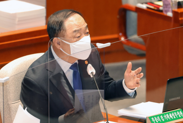 홍 부총리는 이날 오후 국회 예산결산특별위원회 종합정책질의에서 최근 커지는 인플레이션 압력에 대한 정부 대응책을 묻는 양정숙 무소속 의원의 질의에 이같이 답했다.