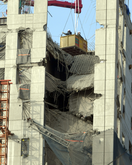 한편 지난 11일 오후 3시46분께 201동 39층 옥상 타설 작업 중 23~38층 바닥 슬래브 등이 무너져 내려 이날 현재까지 5명이 실종된 상태다. 지하 1층 난간 사이에서 심정지 상태로 발견됐던 실종자 1명은 곧바로 옮겨진 병원에서 사망 판정을 받았다.