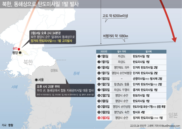 이로써 북한은 2017년 11월29일 이후 4년3개월여 만에 ICBM을 재발사했다.