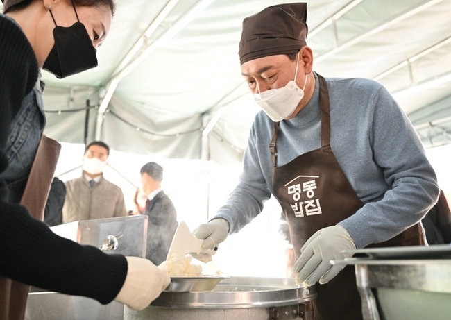 윤 당선인은 앞치마와 머리에 두건을 두르고 무료급식소를 찾은 시민들에게 직접 식판을 들고가 전달하는 등 배식 봉사활동을 했다.