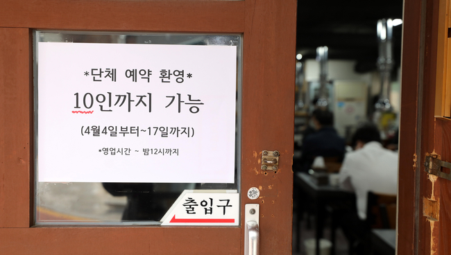 [시사뉴스 김백순 기자] 4일부터 2주간 사회적 거리두기가 완화돼 백신 접종력과 관계없이 최대 10명이 밤 12시(자정)까지 사적 모임을 가질 수 있다.