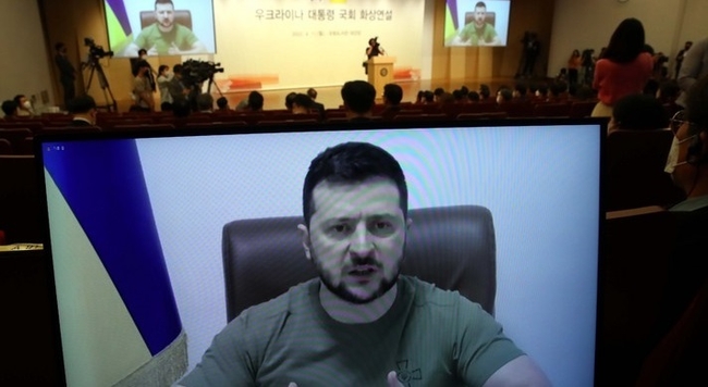 젤렌스키 대통령은 이날 국회에서 진행된 화상연설을 통해 "대한민국 정부가 도움을 준 데 감사하다. 하지만 러시아와의 전쟁에서 살아남고, 이기려면 더 많은 도움이 필요하다"며 이같이 말했다.