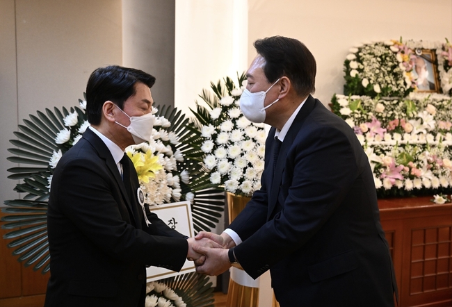[시사뉴스 김철우 기자] 윤석열 대통령 당선인이 20일 저녁 안철수 대통령직인수위원장의 부친상 빈소를 찾아 조문했다.