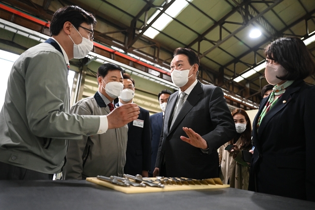 윤 당선인은 이날 오후 창원국가산업단지의 한 원전 가스터빈 부품업체를 방문한 자리에서 “창원의 자랑인 원전생태계가 무너져서 심각한 타격을 받은 거로 안다. 탈원전으로 일자리를 잃고, 또 원전 뿌리산업 기업이 휴업하거나 폐업한다는 얘기 들을 때마다 마음이 아팠다”며 이같이 말했다.