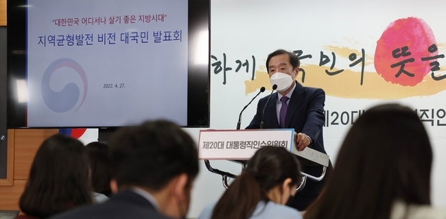 김병준 인수위 지역균형발전특별위원장은 이날 오전 서울 종로구 통의동 인수위에서 지역균형발전 비전과 국정과제를 공개했다.