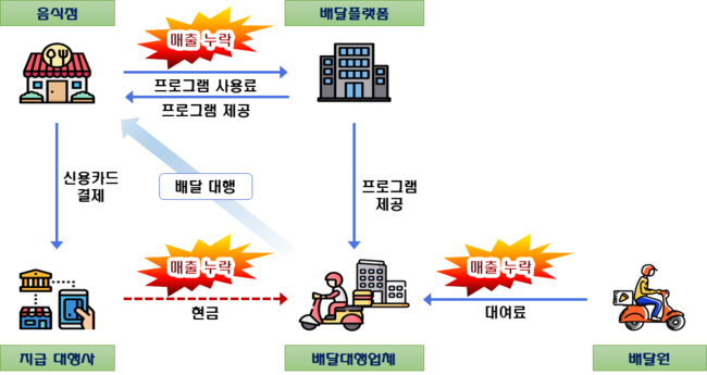 영세 음식점들이 세금계산서를 요구하지 않는 점을 이용하여 프로그램 이용료(주문건수에 따라 지불)매출을 누락한 혐의도 조사 대상이다.