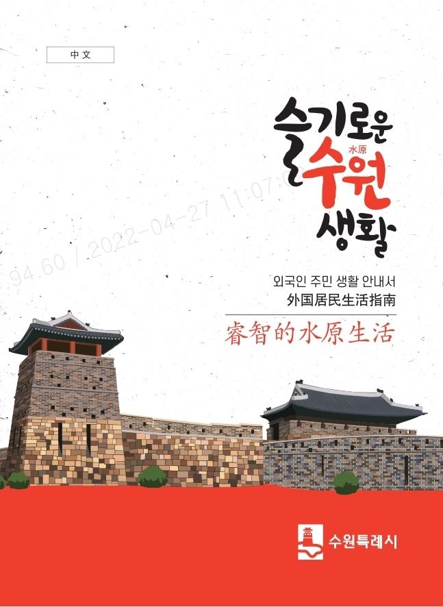 ‘슬기로운 수원 생활’은 시·구청, 동행정복지센터 민원실, 수원 출입국·외국인청 등을 방문하는 외국인 주민에게 배부할 예정이며 수원시 홈페이지 ‘분야별 정보→복지→다문화→다문화생활가이드’에서 전자책(e-book)으로 볼 수 있다.