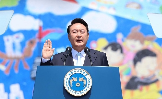 윤 대통령은 이날 서울 여의도 국회 본관 앞 광장에서 열린 20대 대통령 취임식에서 취임사를 통해 "한반도뿐 아니라 아시아와 세계의 평화를 위협하는 북한의 핵 개발에 대해서도 그 평화적 해결을 위해 대화의 문을 열어놓겠다"며 이같이 말했다.