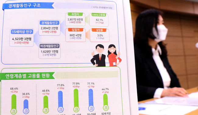 다만 늘어난 취업자의 절반 가까이는 60세 이상인 것으로 나타났다. 지난달 60세 이상 취업자는 42만4000명 늘었다. 또한 취업 시간대별로 봤을 때 1~17시간 초단기 근로자가 8만3000명 증가했다.