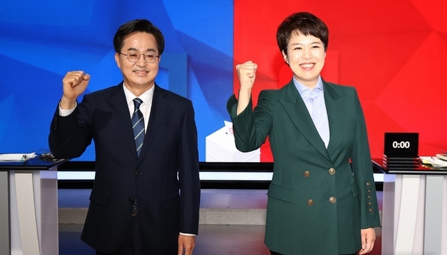 지난 대선에서 이재명 민주당 상임고문을 찍었다고 한 응답자의 75.8%는 김동연 후보를 지지했다. 윤석열 대통령에게 투표했다는 응답자 가운데에선 74.3%가 김은혜 후보를 지지한다고 밝혔다. 여야 지지층이 결집하는 양상이다.