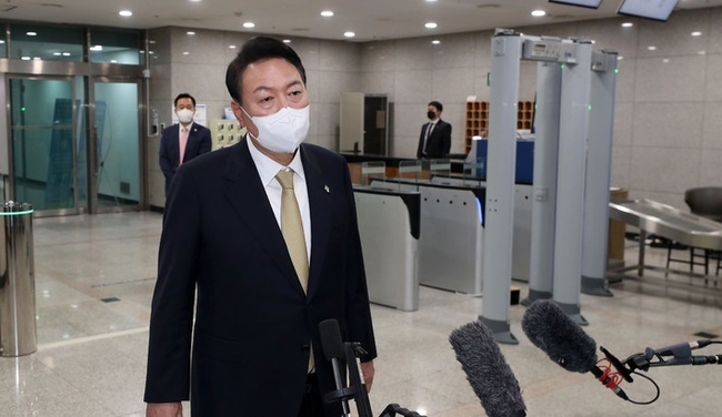 윤 대통령은 이날 오전 서울 용산 대통령실 청사 출근길에 기자들과 만나 "과거에는 민변 출신들이 아주 뭐 도배를 하지 않았느냐"라며 이같이 밝혔다.