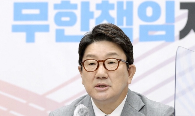 권 원내대표는 이날 오전 국회에서 원내대책회의 이후 취재진에게 "윤석열 대통령의 '과거 일부터 검찰 수사가 이뤄지고 좀 지나면 현 정부 일도 수사가 이뤄진 것'이라는 발표에 대해 어떻게 생각하나"라는 질문을 듣고 이같이 밝혔다.