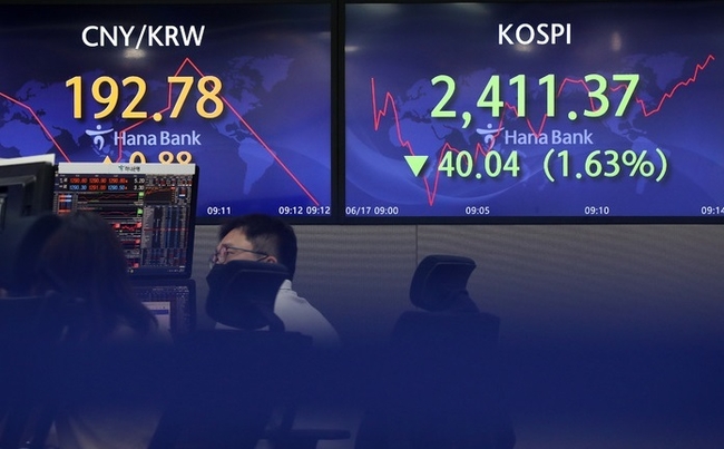 [시사뉴스 홍경의 기자] 17일 코스피는 전 거래일(2451.41)보다 10.48포인트(0.43%) 내린 2440.93에 장을 닫았다. 코스닥지수는 전 거래일(802.15)보다 3.46포인트(0.43%) 하락한 798.69에 거래를 마쳤다. 서울 외환시장에서 원·달러 환율은 전 거래일(1285.6원)보다 1.7원 오른 1287.3원에 마감했다.