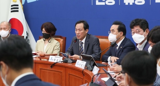우상호 비상대책위원장은 이날 오전 국회에서 열린 민주당 비상대책위원 회의에서 "국회 상황이 꽉 막혀 있는데 여당이 양보안을 내놓아야 여야 협상이 시작되는 것"이라며 "여당이 야당 양보만 기다리며 무책임하게 시간 보내고 있는 것은 잘못된 것"이라고 주장했다.