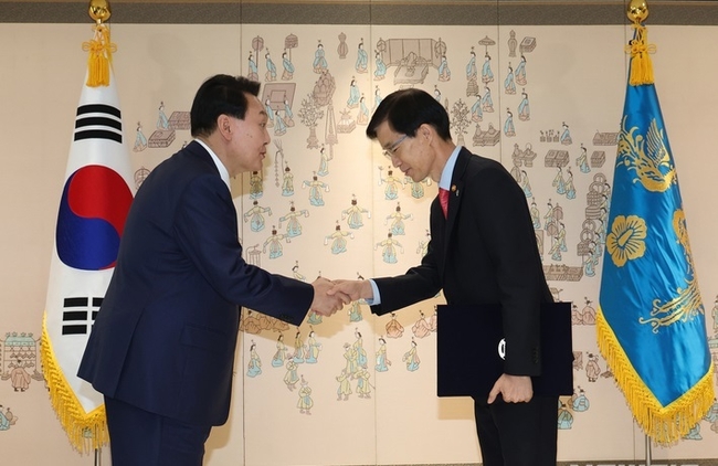 [시사뉴스 홍경의 기자] 윤석열 대통령이 20일 방문규 새정부 초대 국무조정실장에 임명장을 수여했다.