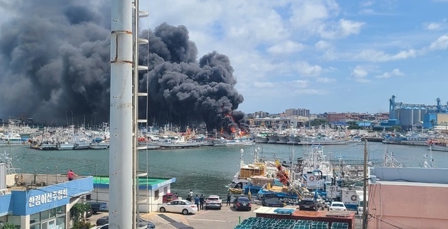 [시사뉴스 홍경의 기자] 7일 오전 10시17분께 제주시 한림항에 계류 중인 선박 3척에서 화재가 발생했다. 신고를 접수한 소방은 오전 10시31분께 대응1단계를 발령하고 진화에 나서고 있다.