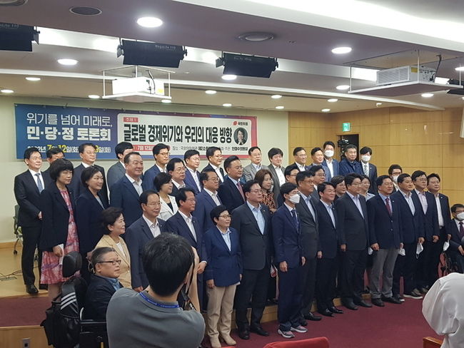 이날 첫 토론회 주제는 '글로벌 경제위기와 우리의 대응 방향'이다. 문재인 정부 5년간 피폐해진 대한민국 경제를 더친 글로벌 경제위기 상황을 진단하고 신성장 극복 방안을 모색한다는 계획이다.