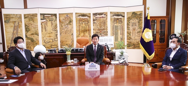 12일 오전 김진표 국회의장 주재로 열린 여야 회동에서 국민의힘 권성동 대표 직무대행 겸 원내대표와 더불어민주당 박홍근 원내대표는 이같이 뜻을 모았다고 양당 대변인들이 전했다.